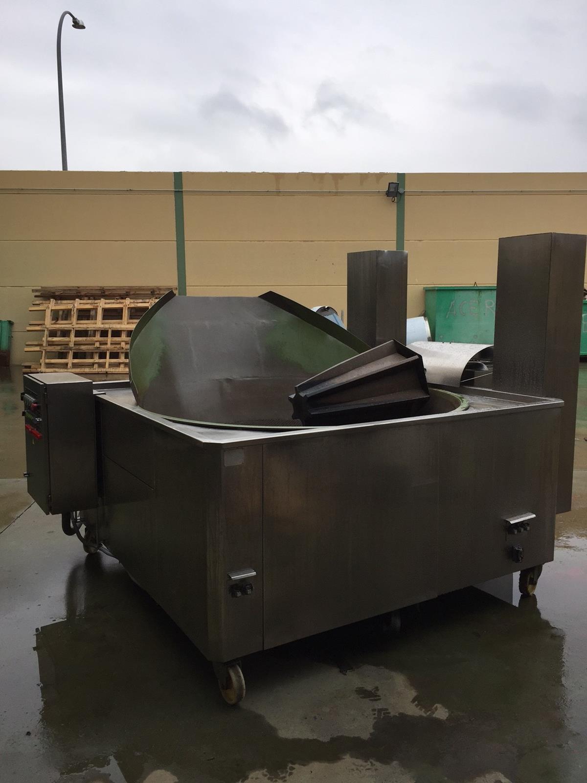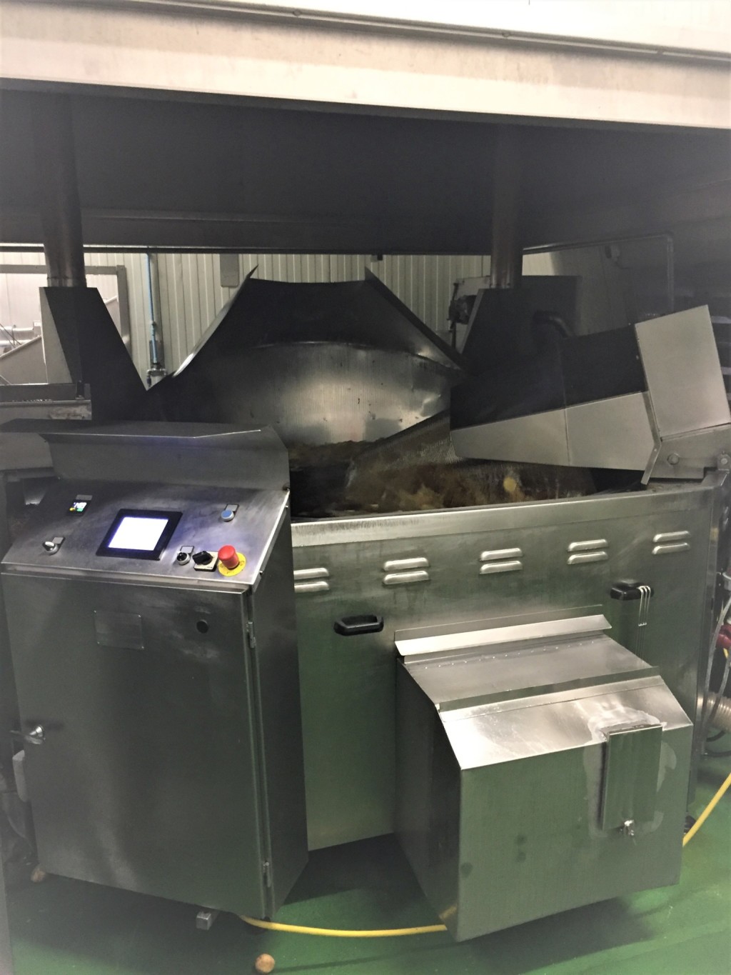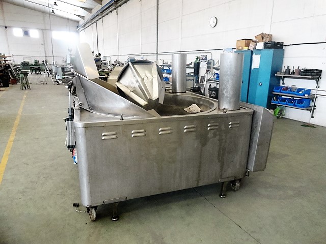 Freidora Industrial Patatas fritas modelo 1.87. Quemador gasoil. Cesta y batidor abatibles por pistones eléctricos.